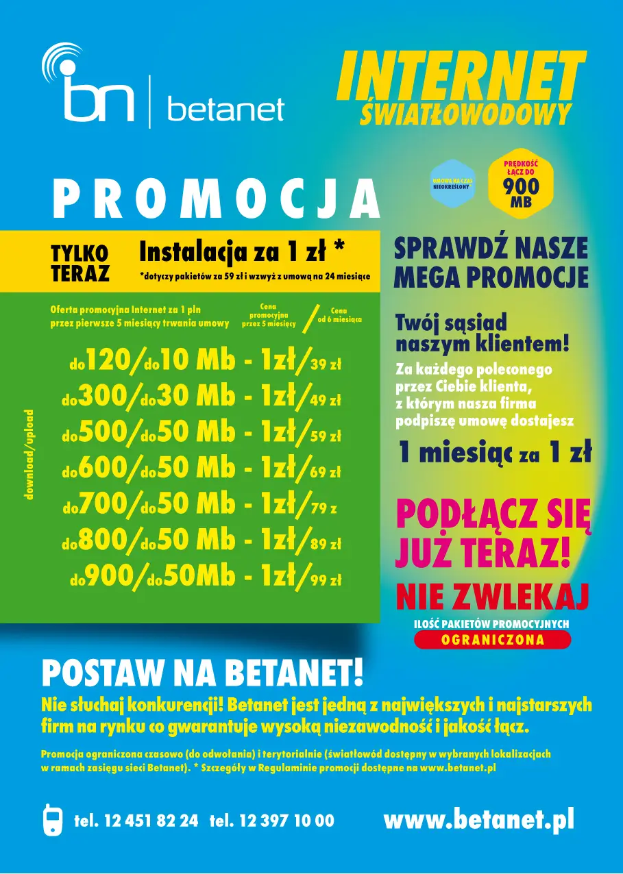 Miło nam poinformować Państwa, że firma Betanet Sp.z.o.o. buduje Światłowód dla Niepołomic i Okolic .